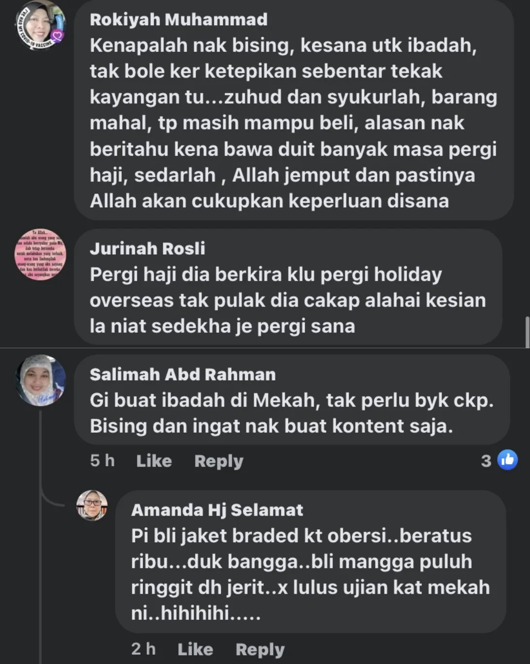 “Gi buat ibadah di mekkah, tak perlu banyak cakap. Bising dan ingat nak buat konten saja”-kata mereka