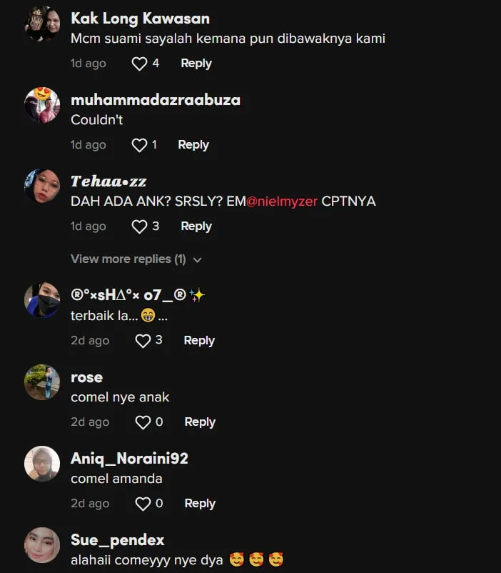 Umum diketahui, anak merupakan salah satu sember pembuka rezeki di dalam sesebuah keluarga. Menjengah ke ruangan komen video tersebut, rata-rata peminat memuji tingkah laku Ayie yang mencium anaknya dan ada juga yang memuji anaknya comel.