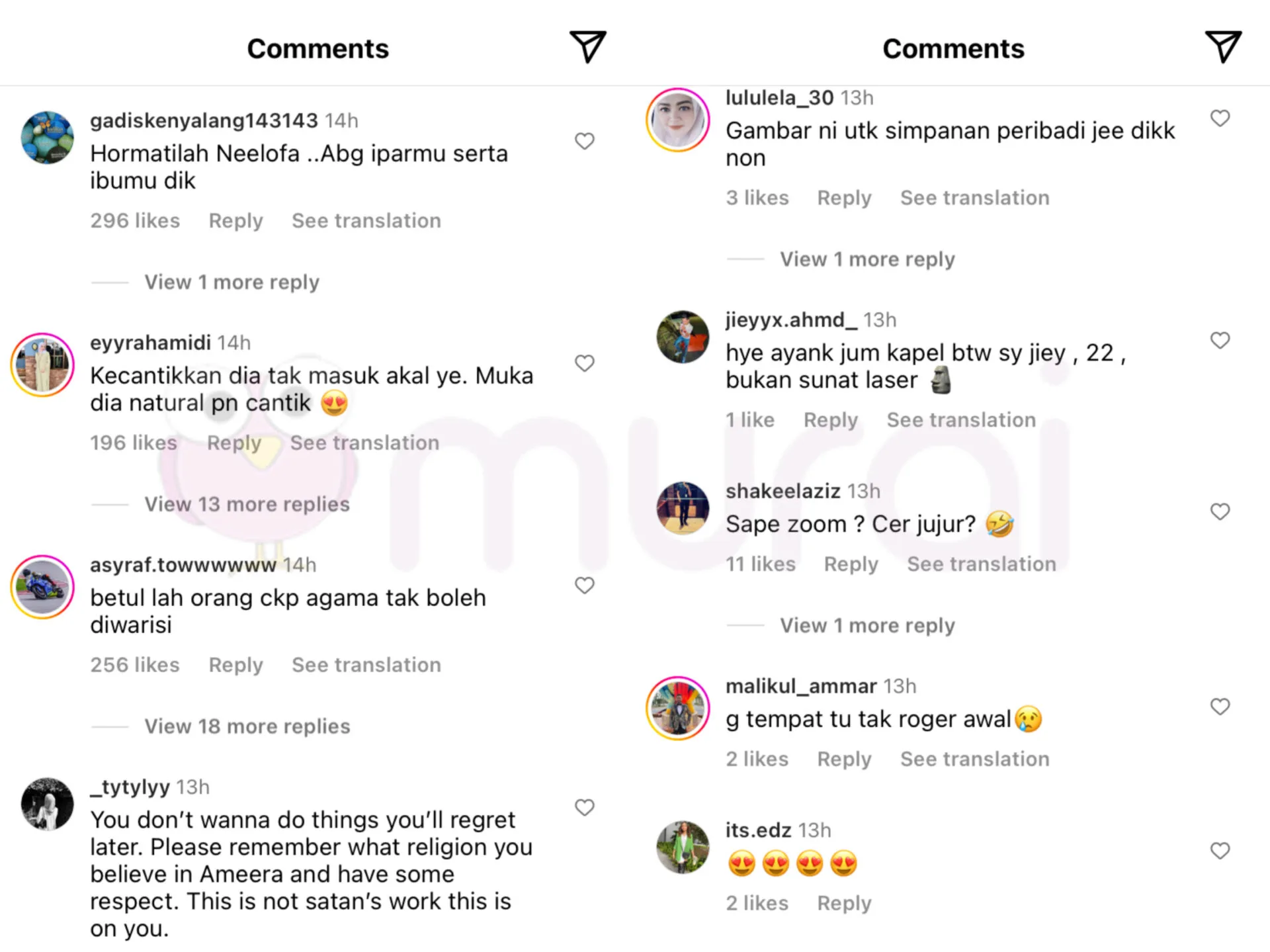 Perkongsian Ameera di Instagram telah mencetuskan kritikan netizen yang meminta pempengaruh media sosial ini untuk menghormati ibu, kakak serta abang iparnya yang merupakan pasangan selebriti yang ‘Islamik’, malah turut mengundang ‘komen nakal’ melihat Ameera yang seksi itu.