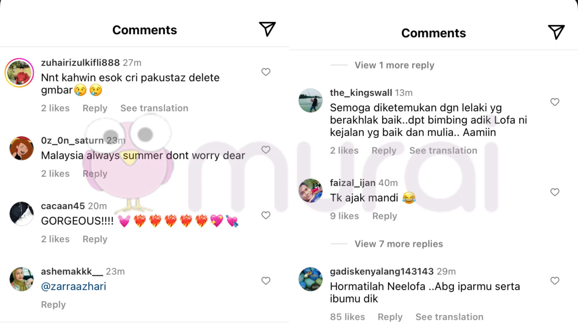 “Semoga diketemukan dengan lelaki yang berakhlak baik. Dapat bimbing adik Lofa ni ke jalan yang baik dan mulia. Aamin.”