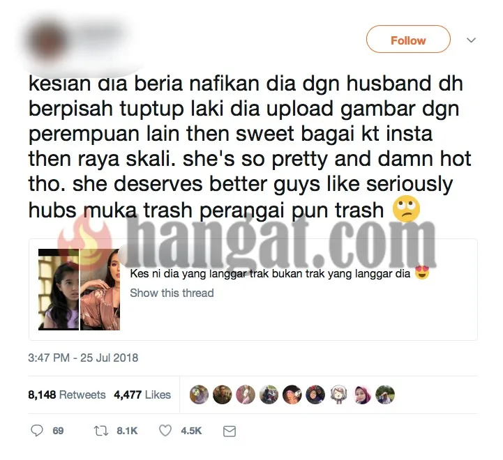 Di akhir statusnya itu, dia turut sempat memerli netizen yang terlalu asyik memperkatakan soal rumahtangga nya sedangkan hal tersebut sama sekali tidak pernah dibawa pada umum.