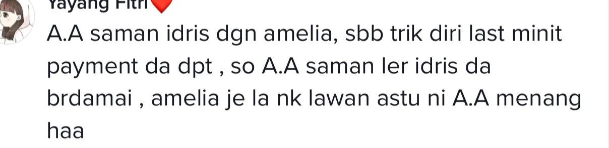 Bagaimanapun, ada juga warganet yang berpendapat bahawa perkara ini seharusnya dapat diselesaikan di luar mahkamah tanpa perlu mengeluarkan sebarang kos serta mendakwa bahawa Amelia seolah-olah ego serta tidak mahu memohon maaf seperti pelakon lain yang juga terlibat iaitu Idris Khan.
