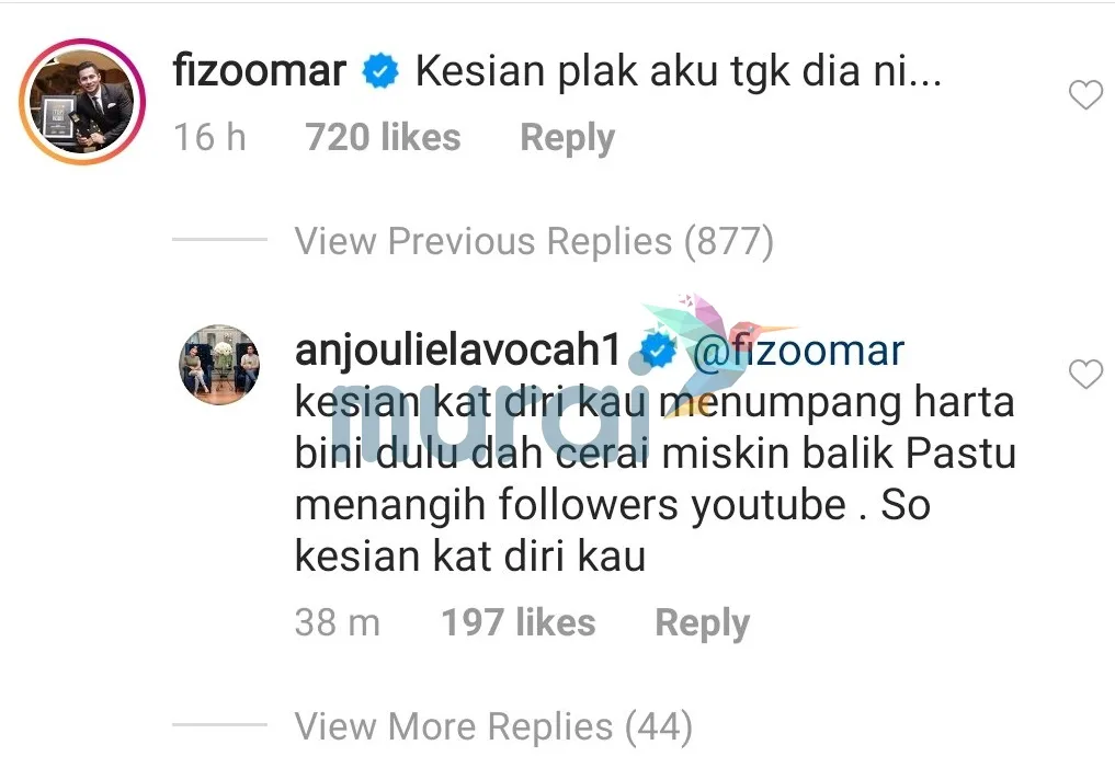 “Fizo Omar, tolong sedar diri. Sebelum kau ada apa-apa, muka buruk saja. Tanpa masyarakat, rakyat yang membantu dan beri kau sokongan, kau masih mamat kampung. Ingat masa hari raya bini kau jual tudung sampai habis, masyarakat dan peminat juga yang beli.