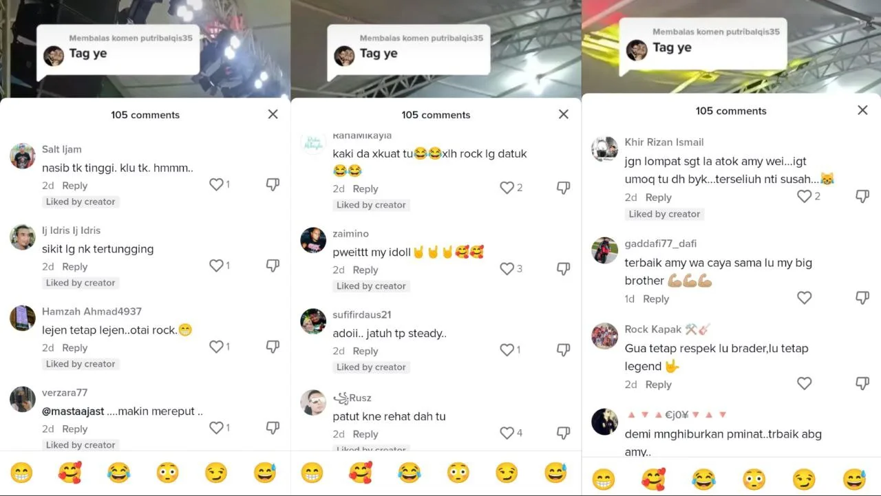 Tular satu video di Tiktok memaparkan seorang artis veteran membuat aksi melompat kemudian dilihat tergelecek sedikit yang kalau dilihat agak sakit. Namun , artis tersebut menunjukkan senyumannya kepada peminat yang mengatakan beliau dalam keadaan baik.