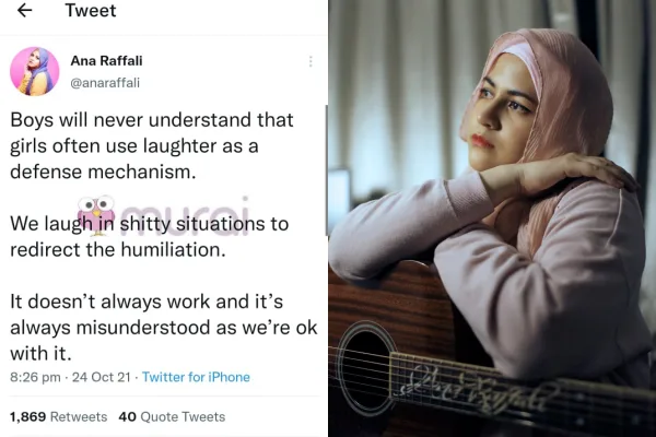 “Lelaki tak akan pernah faham yang perempuan selalu guna ketawa sebagai mekanisma pertahanan.