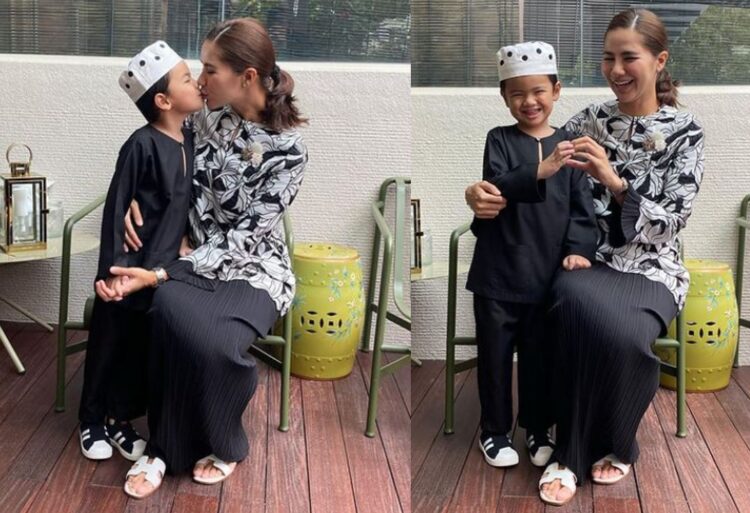 Tidak ketinggalan kakak kepada Neelofa, Noor Nabila yang turut berkongsikan gambar bersama anaknya Jebat Jayden di pagi raya.