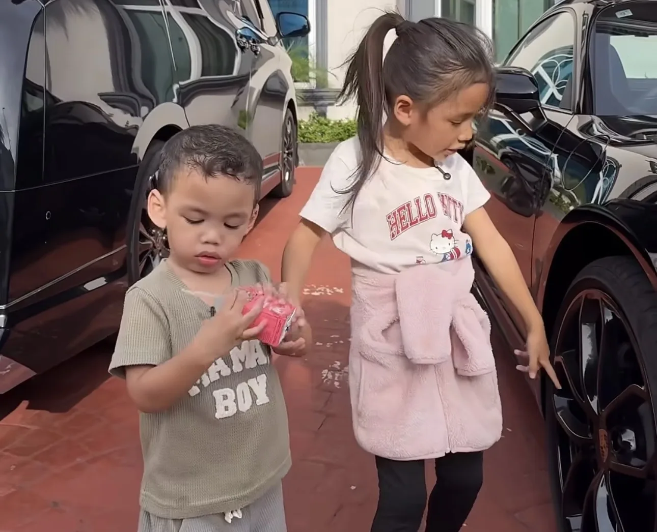 Terkini, Datin Shahida menerusi hantaran di Instagram berkongsi gelagat anak-anaknya iaitu Raudhah dan Luqman yang mendesak mahu ‘review’ kereta baharu Ammar Ahyan di kediaman mereka itu.