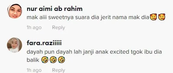 Menjengah keruangan komen, rata-rata warganet terhibur dengan reaksi Fahri yang teruja melihat ibunya. Ada juga yang mengatakan kelakuan Fahri ketika itu comel.