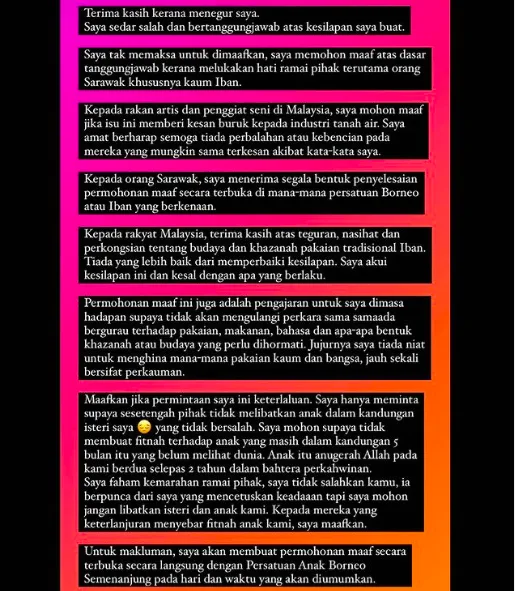 “Kami sekali lagi ingin memohon maaf kepada mereka yang terasa hati dengan kami” tulis Maryam