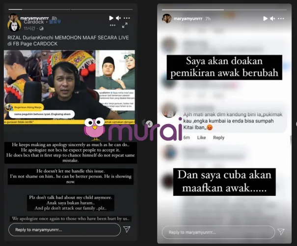 Kontroversi personaliti media sosial terkenal, Ryzal ‘Durian Kimchi’ masih hangat diperkatakan biarpun sudah membuat permohonan maaf secara terbuka termasuklah dari isterinya, Maryam.