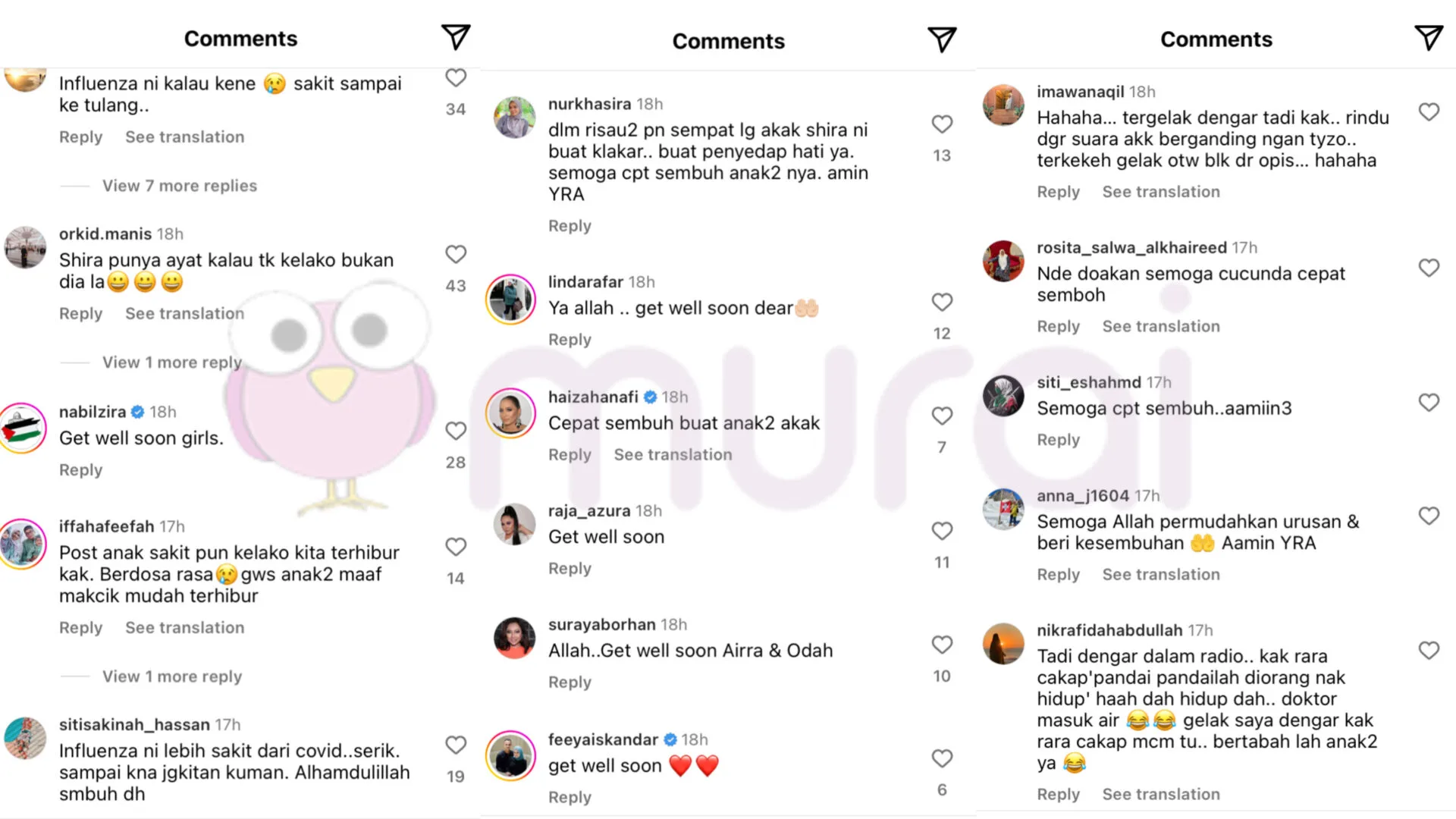 Di sebalik ramai yang menitipkan doa buat anak-anak penyampai radio ini agar diberikan kesembuhan, ramai yang memberikan pelbagai reaksi mereka terhadap Sharifah Shahirah yang masih lucu biarpun rasa bimbang dengan keadaan kesihatan Airra dan Audra.