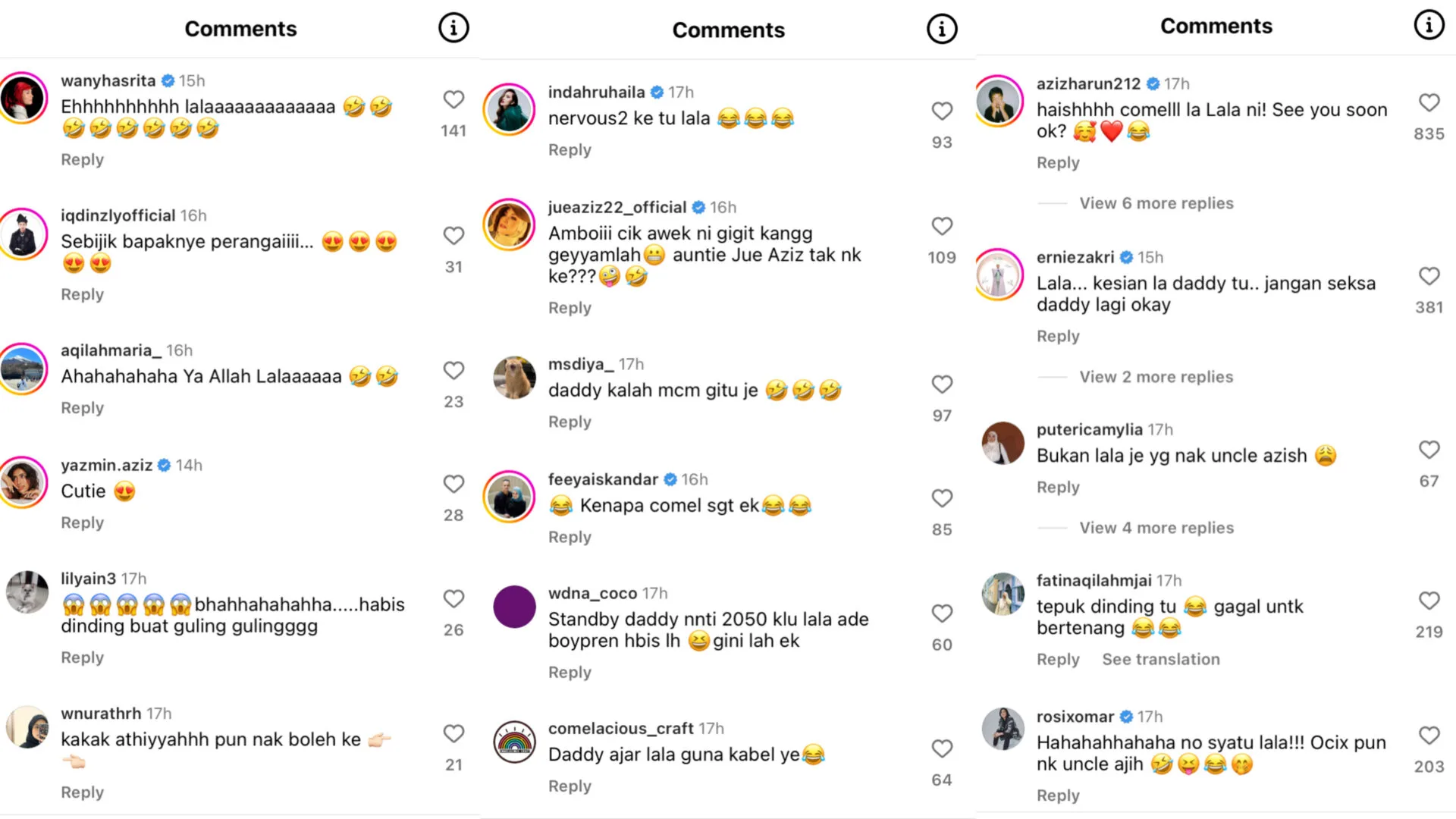 “Haishh comell la Lala ni! See you soon ok? ?❤️?.”-Aziz Harun