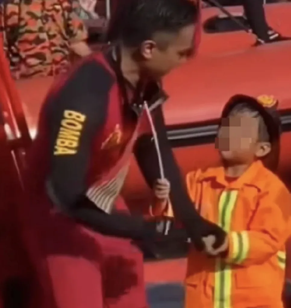 “Anak saya peminat bomba. Dia sangat teruja kerana dapat menyertai perbarisan walaupun terpaksa bangun pada pukul 5 pagi. Dia teruja kerana dapat memakai baju bomba sehari sebelum acara itu. Sebagai bapa, Saya bangga dengan keberanian beliau untuk menjadi sebahagian daripada perarakan.” – tulisnya di akaun facebook.