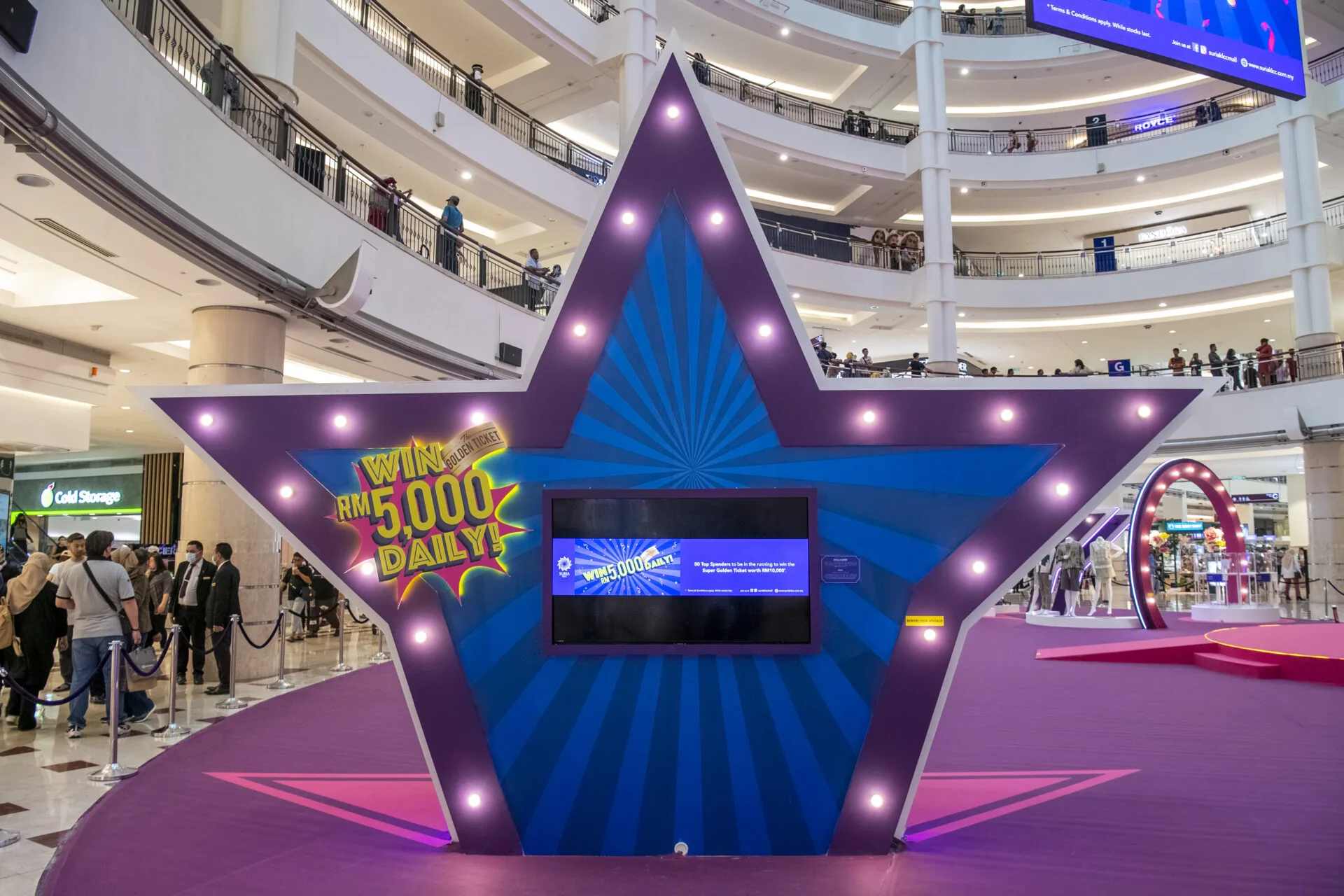 Pentas utama kempen ini akan mempersembahkan sambutan yang meriah diiringi musik kemenangan yang membangkitkan semangat untuk tontonan para pengunjung bagi setiap cabutan ‘Golden Ticket’ yang berjaya ditebus.