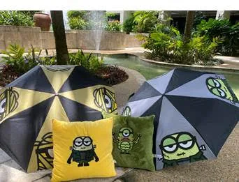 Reka bentuk payung yang mudah dilipat dan automatik boleh didapati dalam dua watak, Frankenstein Bob dan Mummy Stewart, sementara Reka bentuk selimut bantal yang selesa menampilkan Frankenstein Bob atau Creature Mel. Comel kan?