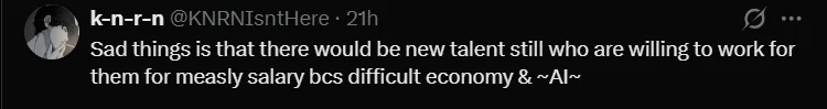 Kenyataan itu pantas tular ke platform X, sekali gus mengundang reaksi keras daripada animator serta warganet yang melihat isu ini sebagai cerminan cabaran sebenar pekerja kreatif di Malaysia.