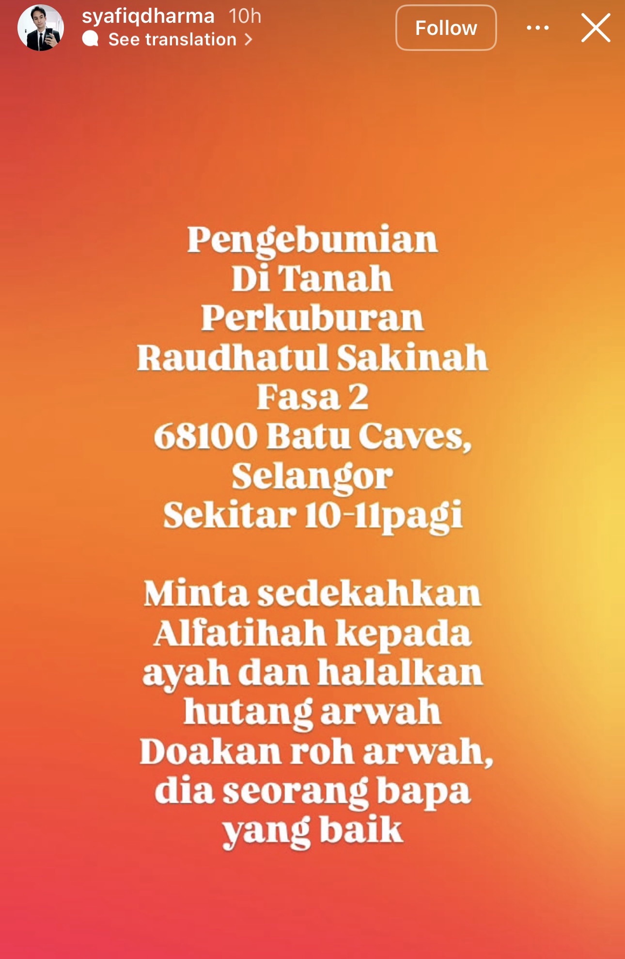 Doakan roh arwah, dia seorang bapa yang baik.”-tulis Syafiq di Insta Stories