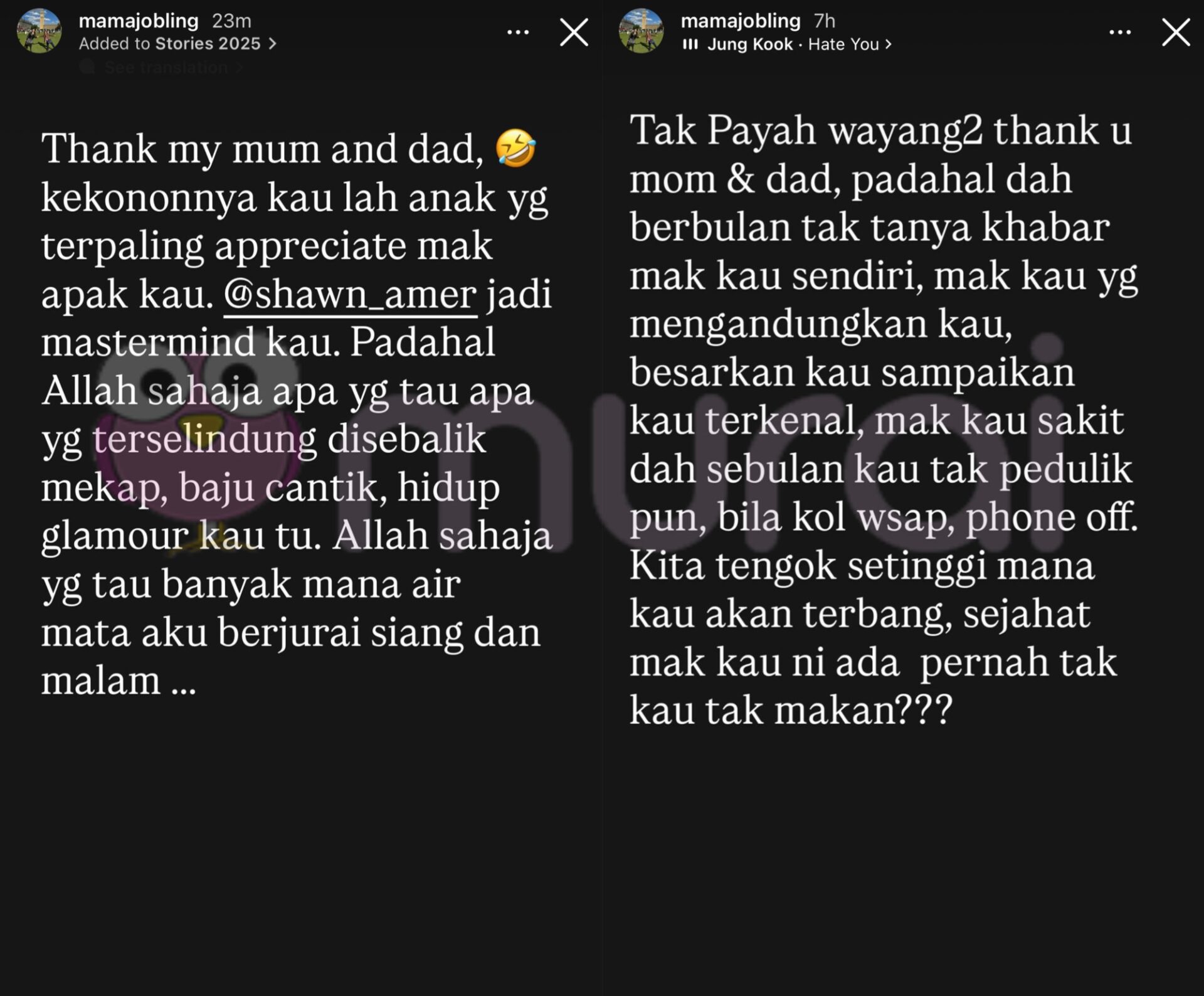 Kiteorang tak besarkan dia supaya dia buang mak, buang family macam ni. Kau dengan Linda, yang muka tak malu, manipulate anak aku, suruh je lah anak aku sebut nama korang tu, nak sangat jadi terpaling kan.”-tegas Ariz di Instagram