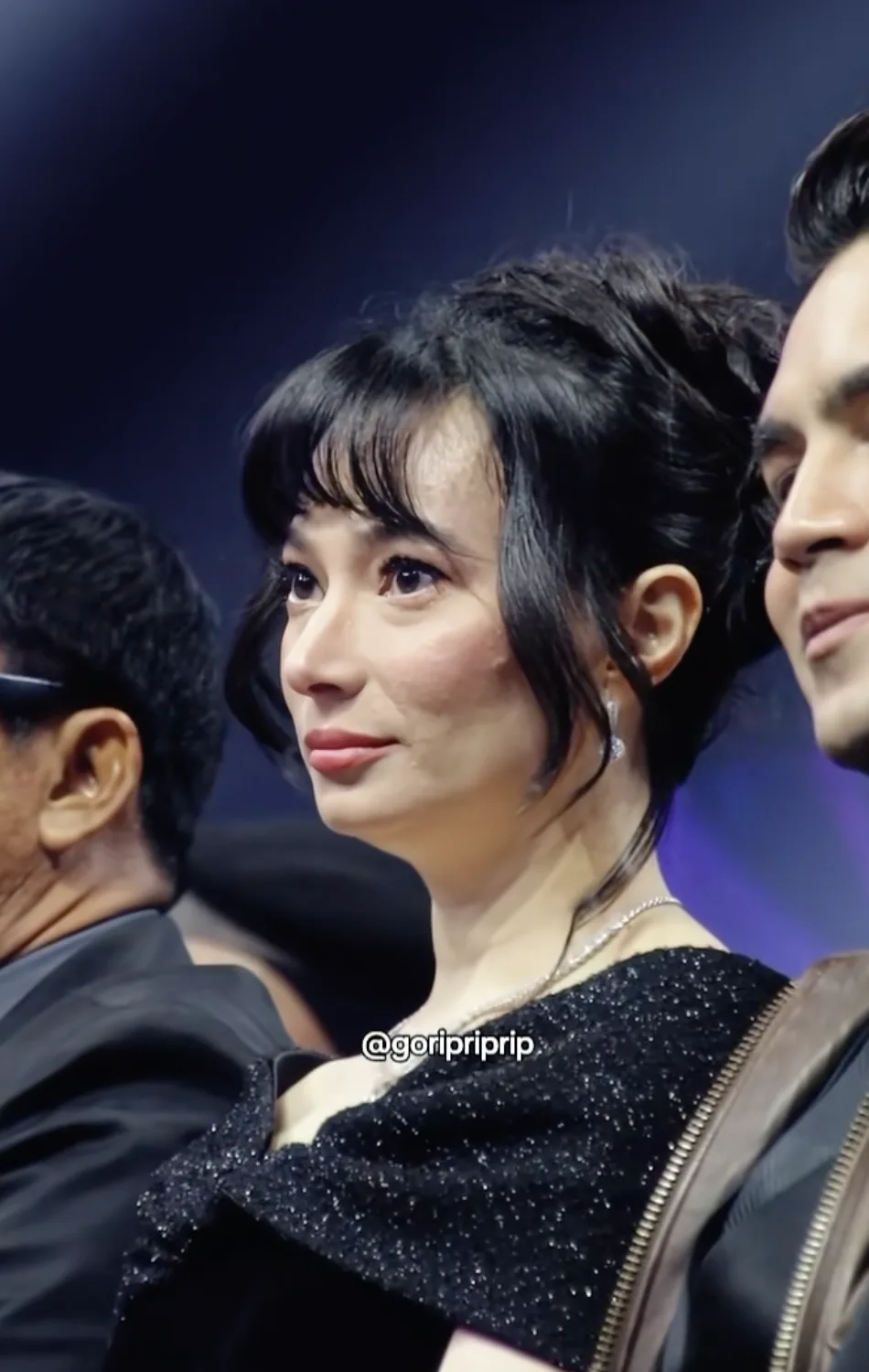 Dua-dua tampil sedondon serba hitam, memang nampak elegan habis. Asmirandah pilih gaun baldu hitam potongan off shoulder dengan sentuhan bling-bling yang menaikkan seri. Rambut pula disanggul gaya messy dan berponi, manakala solekan dia pula natural dan flawless, ringkas tapi tetap on point.