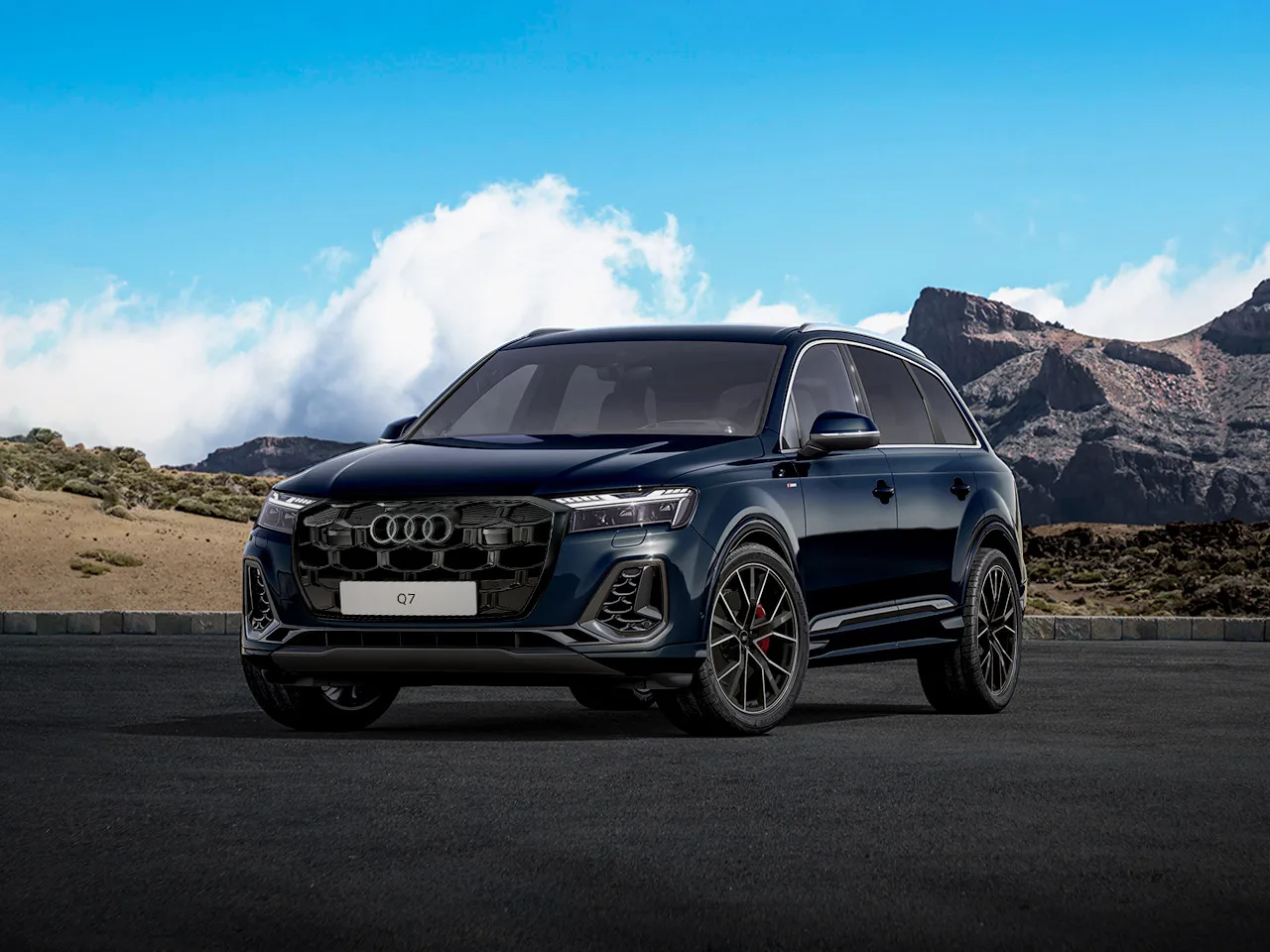 Bahagian luar Audi Q7 S Line ni memang nampak garang habis. Ada kit badan S Line, kemasan Black Styling Package, rim besar 22 inci, logo Audi warna gelap dan pilihan warna menarik termasuk putih Glacier, biru Waitomo, hitam Mythos dan kelabu Daytona. Memang nampak eksklusif dan berkarakter.