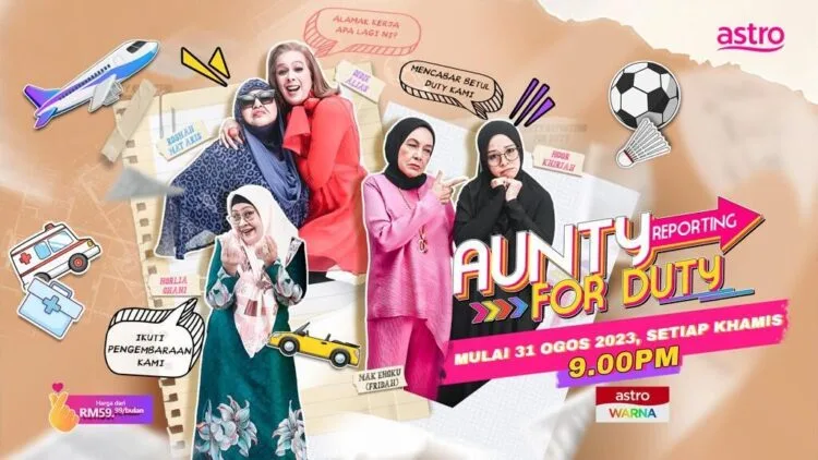 ‘Aunty Reporting For Duty’ akan ditayangkan pada setiap hari khamis, bermula 31 Ogos 2023, jam 9.00 malam secara eksklusif di saluran Astro Warna (107).