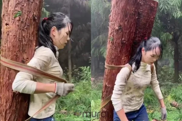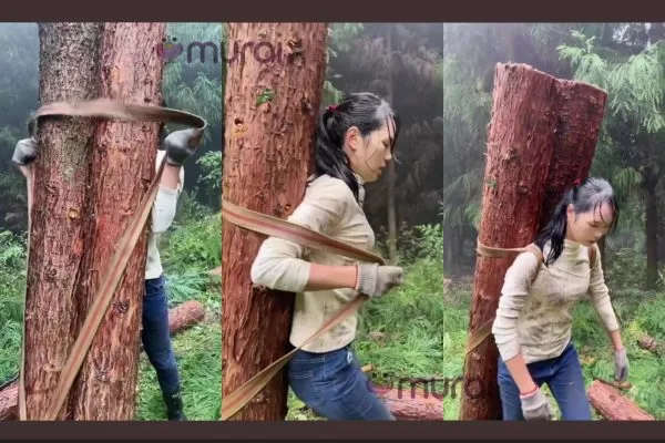 Berdasarkan video tersebut, wanita muda ini bertindak memaku log yang diikat bersama tali dengan hanya menggunakan sabit tajam pada hujung kayu balak tersebut. Kemudian wanita ini memikul kayu balak berkenaan di belakang badannya dan menuju keluar hutan.