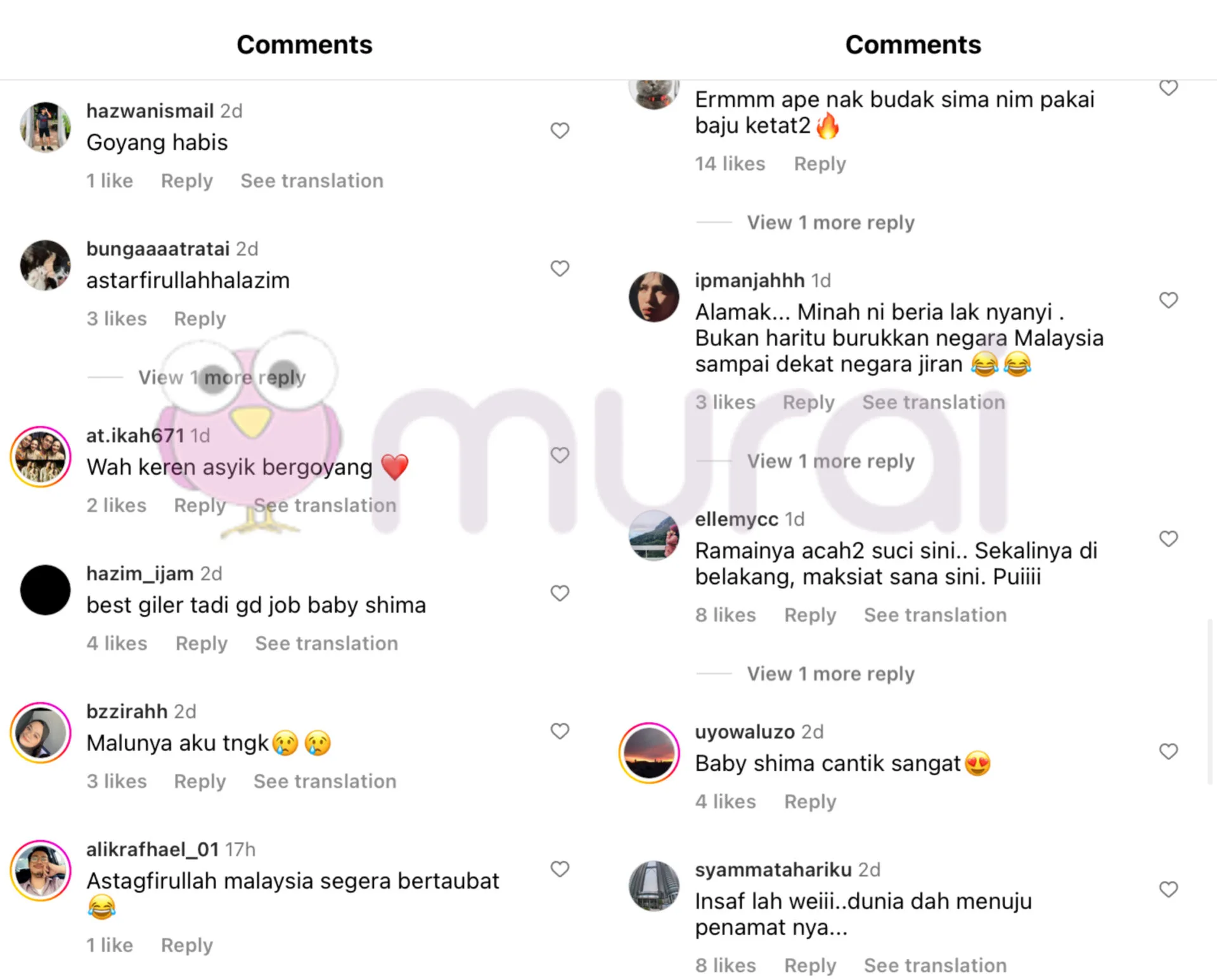 Perkongsian Baby Shima mendapat pelbagai reaksi netizen di ruangan komen, malah ada yang meluahkan rasa ‘malu’ melihat penyanyi ini yang tanpa segan silu bergelek di hadapan khalayak ramai.