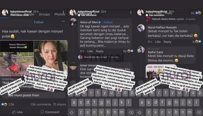 Murai MY menjengah ke media sosial penyanyi manis ini, dan melihat Shima memuatnaik tangkap layar artikel sebuah portal hiburan yang menulis tentang dirinya memberi makan kepada monyet bersama komen-komen kecaman daripada warga Facebook.