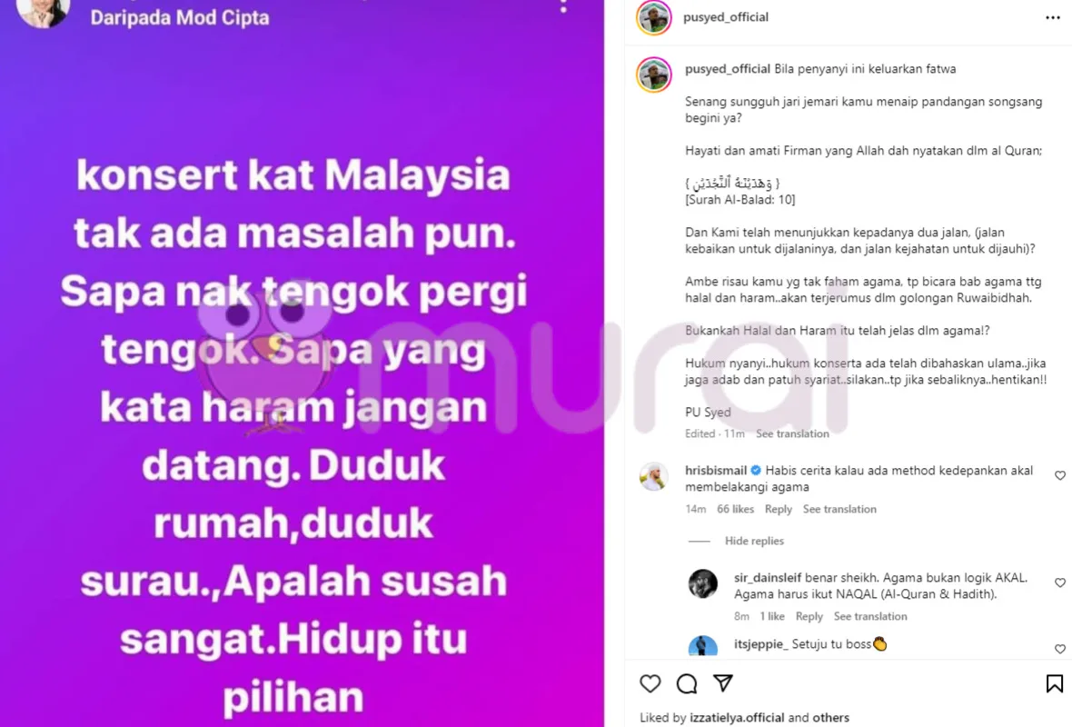 Hukum nyanyi..Hukum konsert ada telah dibahaskan ulama. Jika jaga adab dan patuh syariat, silakan..Tapi jika sebaliknya..Hentikan!!.”-tegas PU Syed