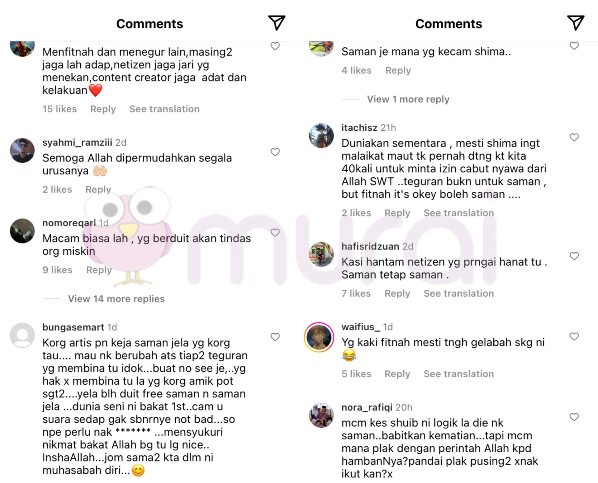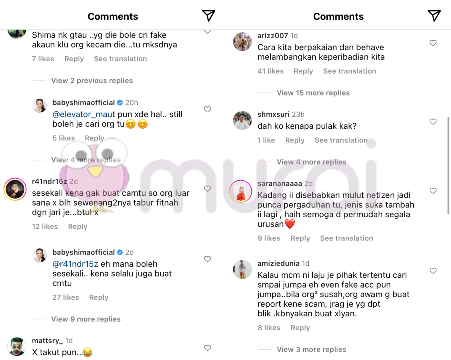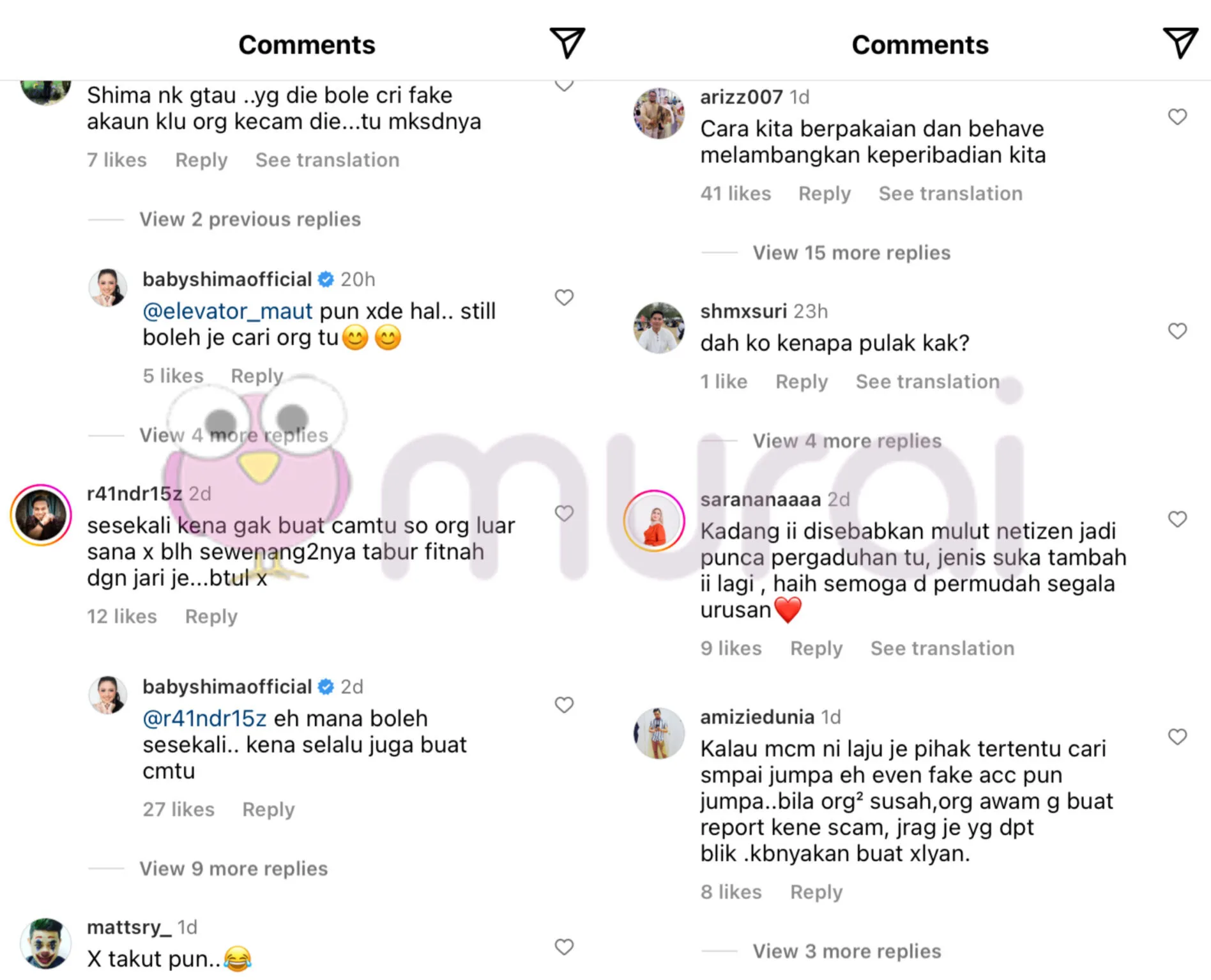 Di ruangan komen, rata-rata netizen dilihat memberikan pandangan mereka, malaha ada yang turut bersetuju dengan kenyataan Baby Shima yang mahu memfailkan saman penyebar fitnah.