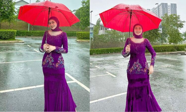 Terbaru, Adira ada kongsikan di laman Instagram miliknya 2 keping gambarnya yang memegang payung dalam suasana hujan beserta dengan baju bewarna unggu.