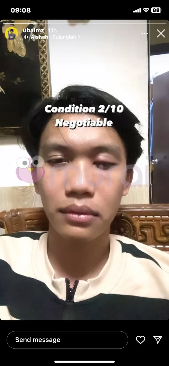 Sejurus Murai MY melihat gambar yang dikongsikan oleh ubai tanpa menyatakan sebabnya, Murai MY meninjau pula ke instagram bakal ibu mentuanya dan bakal isterinya itu. Terlihat bakal ibu mentuanya, berkongsikan gambar bersama Ubai di Instastory miliknya pergi buat check up mata.