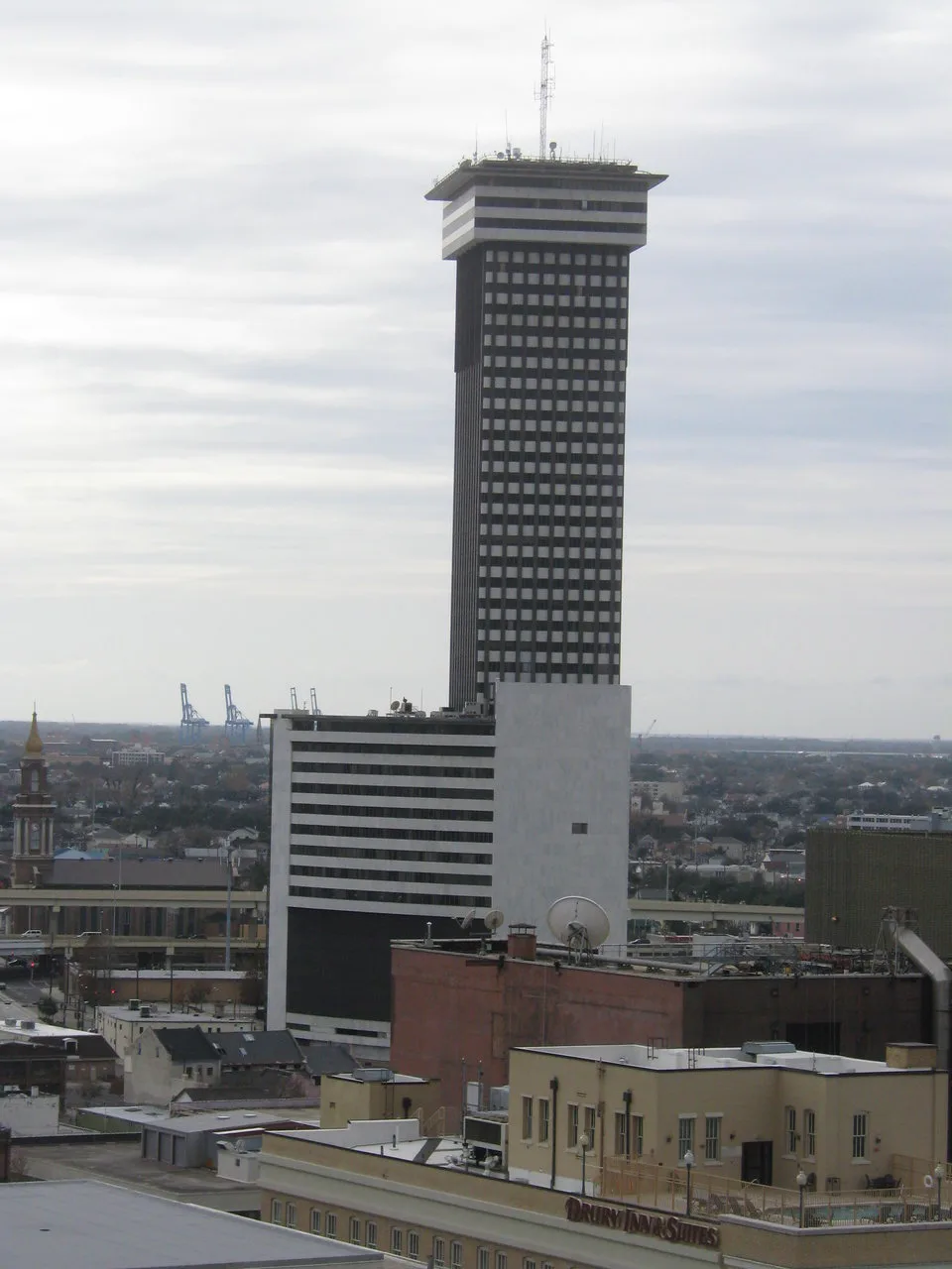 Plaza Tower yang mempunyai 45 tingkat dan dibina pada tahun 1960 ini digunapakai sebagai bangunan yang pejabat. Menurut The Times-Picayune, bangunan yang berkeluasan 7,000 kaki persegi ini terbukti terlalu kecil untuk banyak penyewa, dan pada masa itu juga banyak penyakit berjangkit yang dilaporkan berjangkit dikalangan pekerja memaksa ia ditutup pada tahun 2002. AKhirnya ia dibeli oleh pemaju pada 2016, tetapi masih kosong.
