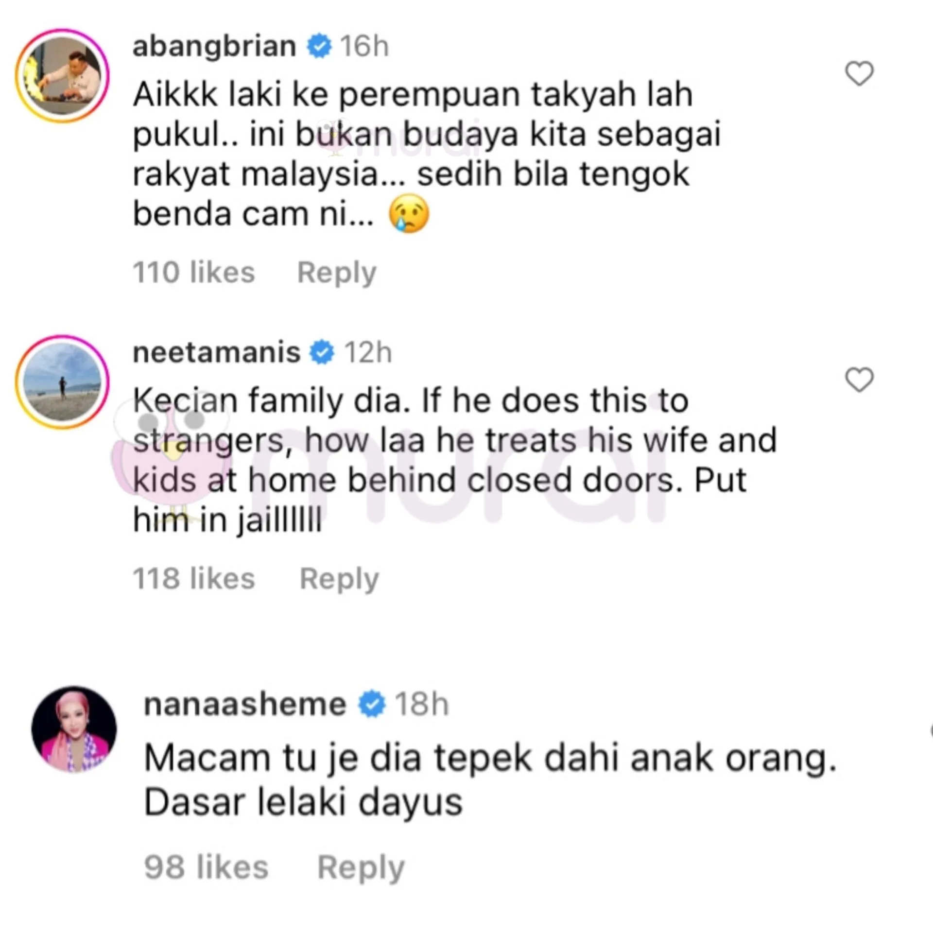 “Aikk lelaki ke perempuan takyah la pukul. Ini bukan budaya kita sebagai rakyat Malaysia. Sedih bila tengok benda macam ni.”- Brian Masterchef