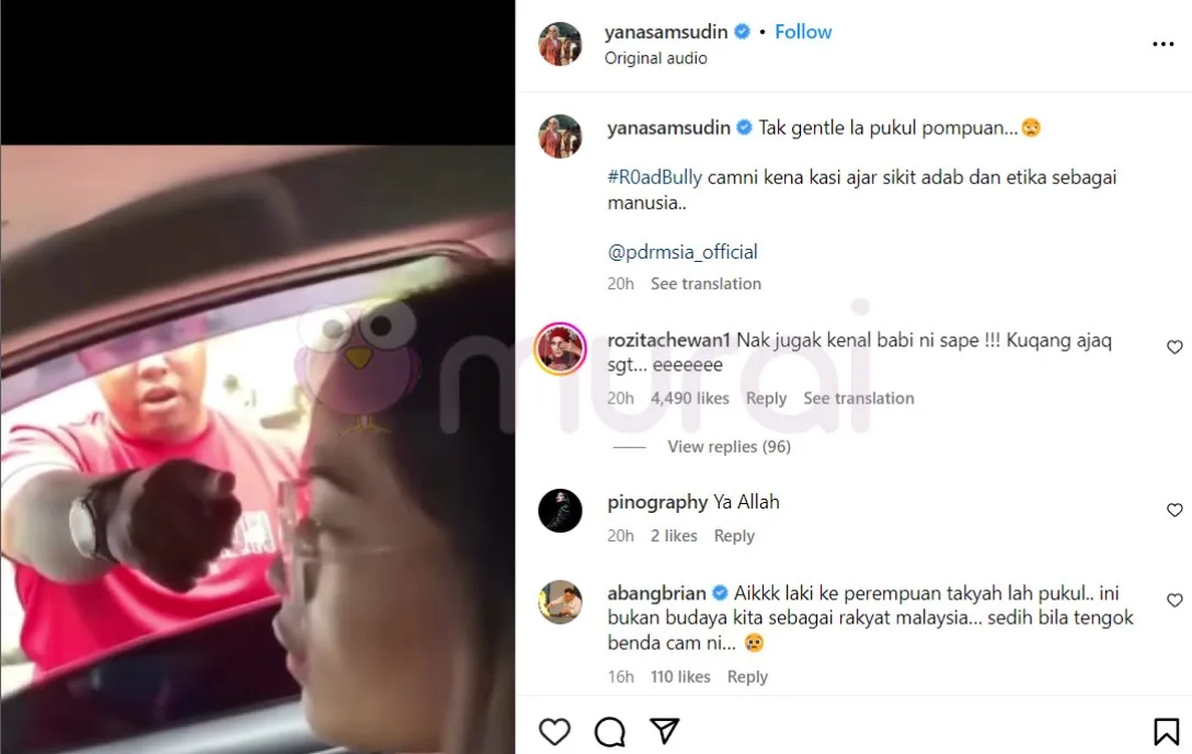 “Tak gentle la pukul perempuan. Roadbully camni kena kasi ajar sikit adab dan etika sebagai manusia.”-kapsyen Yana Samsudin di Instagram