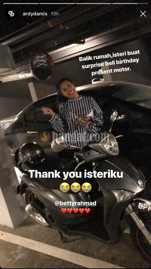 Wowww… tak sangka pemilik Sambal Sewel dan Sambal Gila ni sungguh romantik sekali. Baru sahaja mendirikan rumah tangga 2 bulan lepas, suami kepada Betty Rahmad iaitu Ardy Damis dihadiahkan sebuah motosikal oleh isteri tercinta. Makan hati team murai.my!