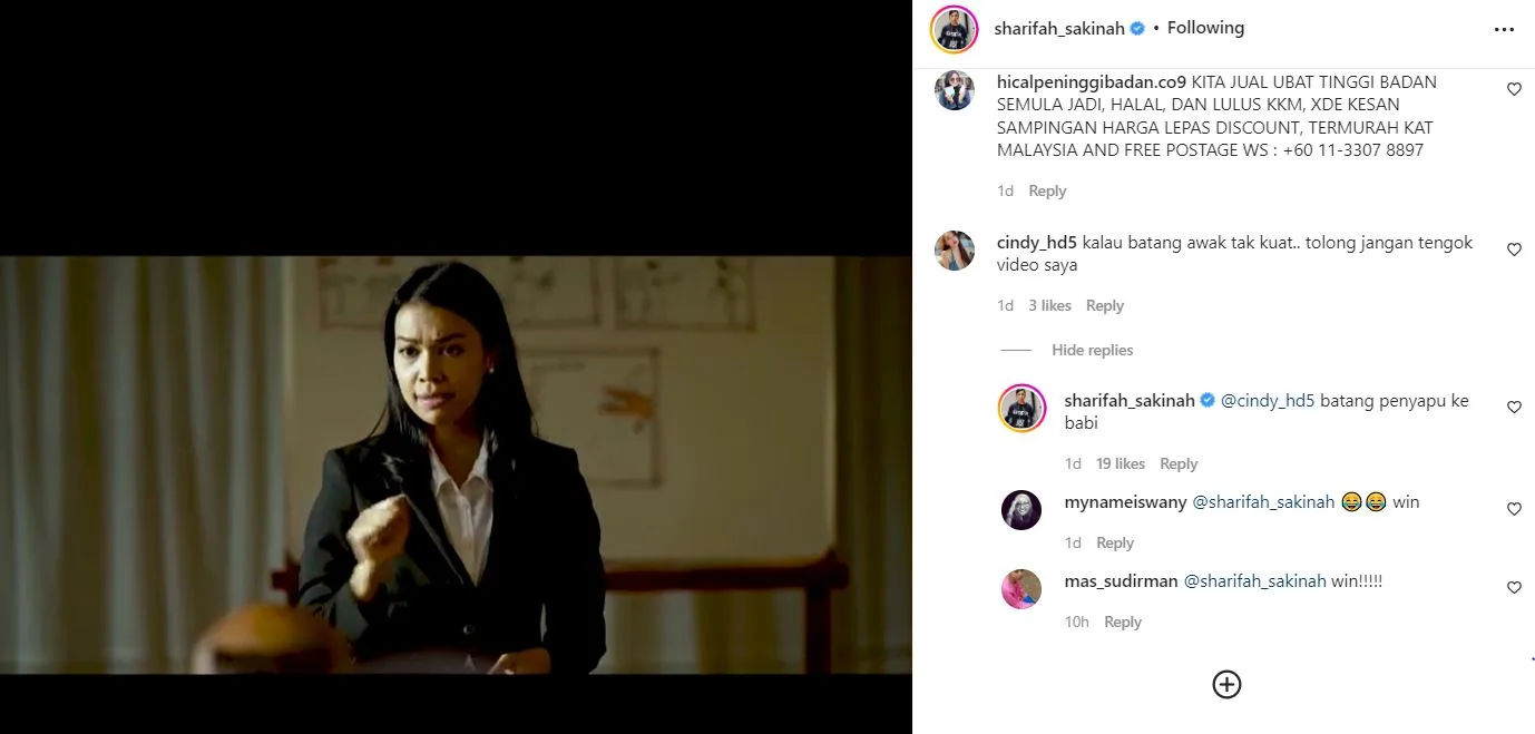 Satu komen yang tidak enak telah diberikan kepada ‘posting’ Sakinah dan dia membalasnya sehinggakan mendapat pujian dari netizen.
