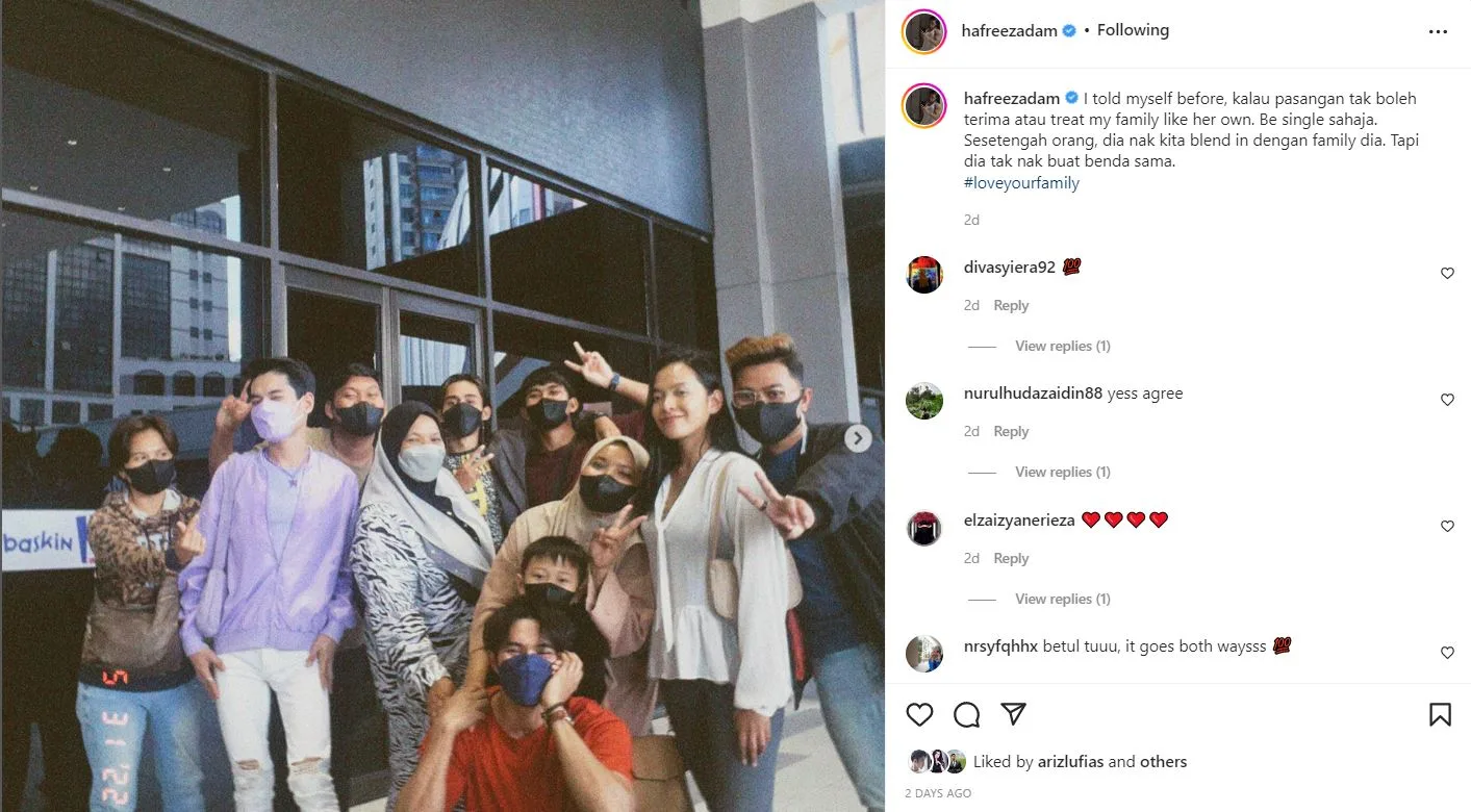 Dalam Instagram milik Hafreez, dia memuat naik gambar bersama ahli keluarganya.