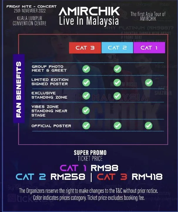 Di laman TikToknya, AMIRCHIIKK telah menyampaikan berita baik bahawa harga tiket telah diturunkan. Berita baik ini dibuat setelah AMIRCHIIKK menerima keluhan peminat bahawa harga tiket agak mahal.