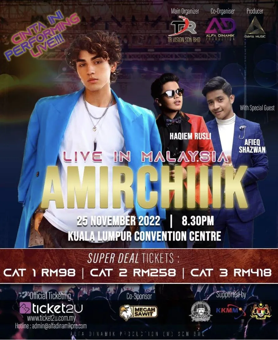 Seperti mana yang pernah diumumkan sebelum ini, penyanyi berasal dari Russia, AMIRCHIIKK akan datang ke Malaysia pada 26 November ini untuk Malaysian Fans Meet & Greets LIVE CONCERT 2022 di Kuala Lumpur Convention Centre (KLCC).