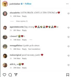 Menjengah di ruangan komen perkongsian tersebut, ramai peminat berharap Justin agar cepat sembuh seperti sediakala.