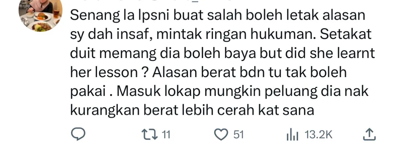 “Takziah buat Bainun dan keluarga, kami doakan moga ia menjadi iktibar dan Bainun berubah menjadi yang lebih baik dan menyesali segala kezaliman yang dilakukan.