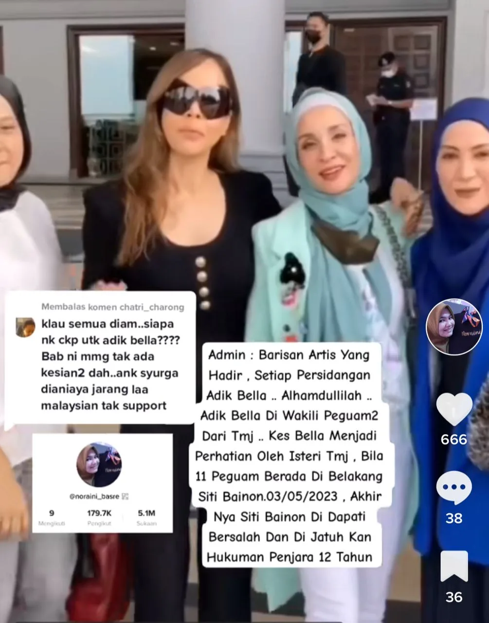 “Ramai di luar tak boleh masuk, para saksi para pembela dan penyokong #justiceforbella menunggu peluang bertukar tak masuk..