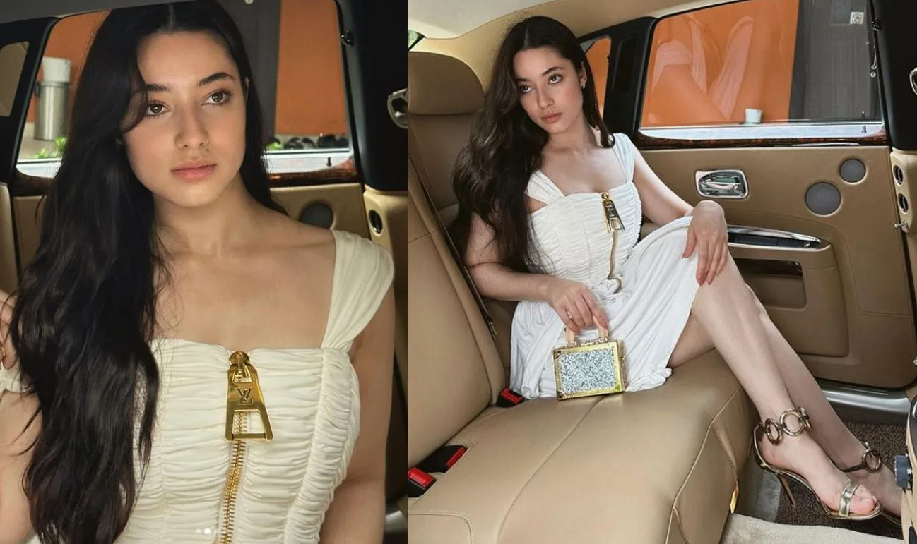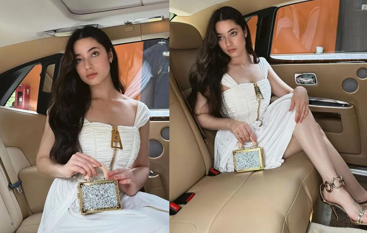 Dalam beberapa keping gambar yang dimuat naik tersebut, kelihatan Ameera Khan memakai baju bawarna serba putih bersama tas tangan didalam kereta yang mewah.