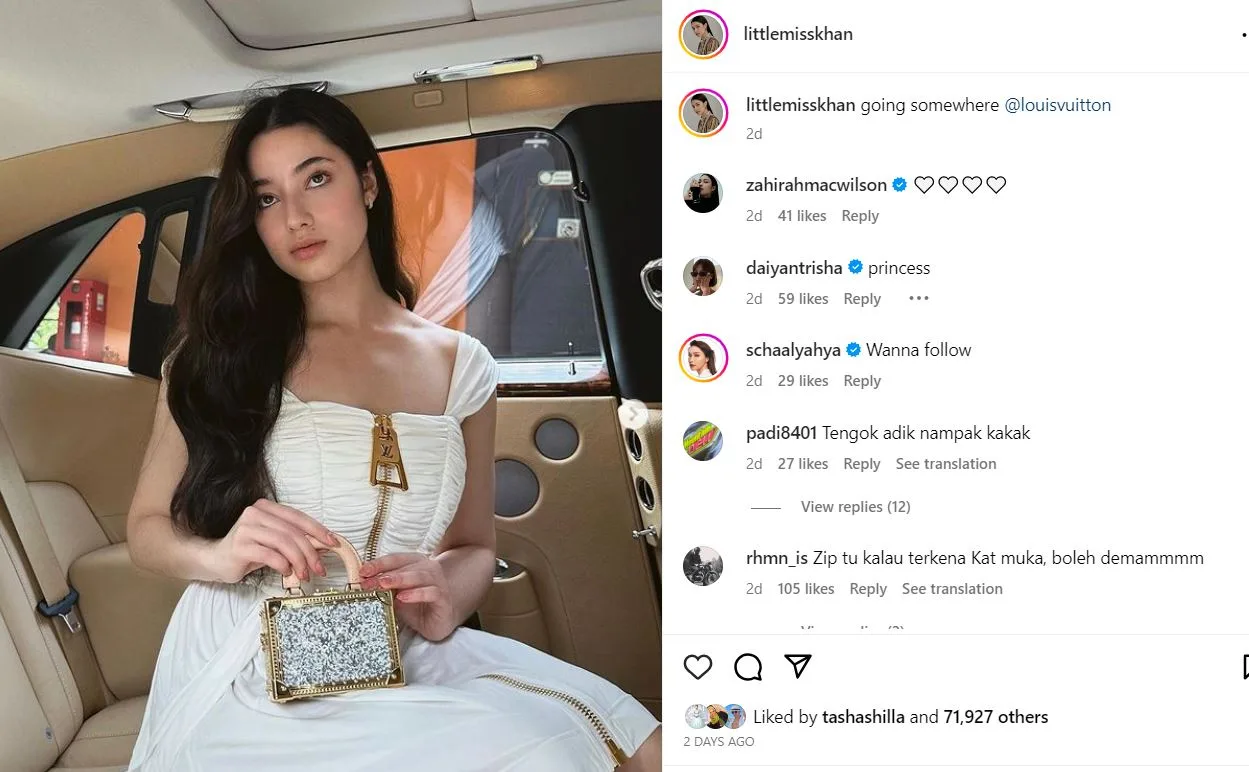 Terbaru, adik kepada Neelofa ini ada memuat naik beberapa keping gambar dia memakai baju berjenama daripada Louis Vuitton.
