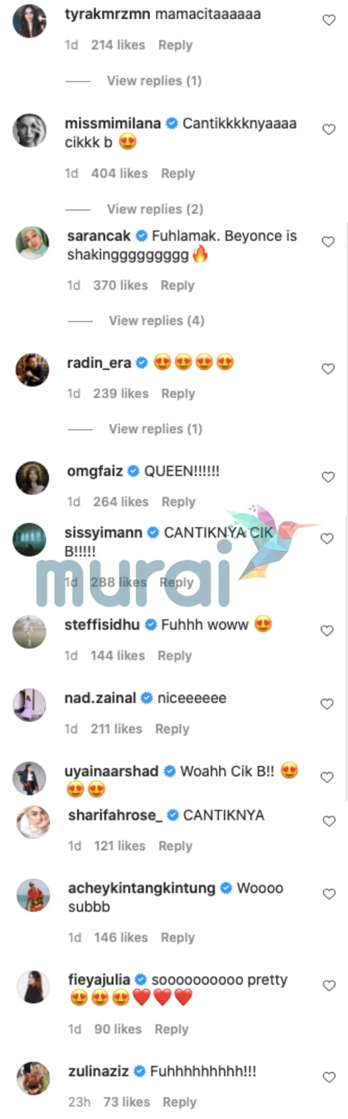 Tidak kurang daripada itu, ada juga diantara mereka yang menganggap Cik B seperti penyanyi rap terkenal, Cardi B. Terdahulu, Cik B turut dipuji ramai apabila kelihatan feminin dan bergaya dalam menjayakan sesi fotografi sebuah majalah tempatan.