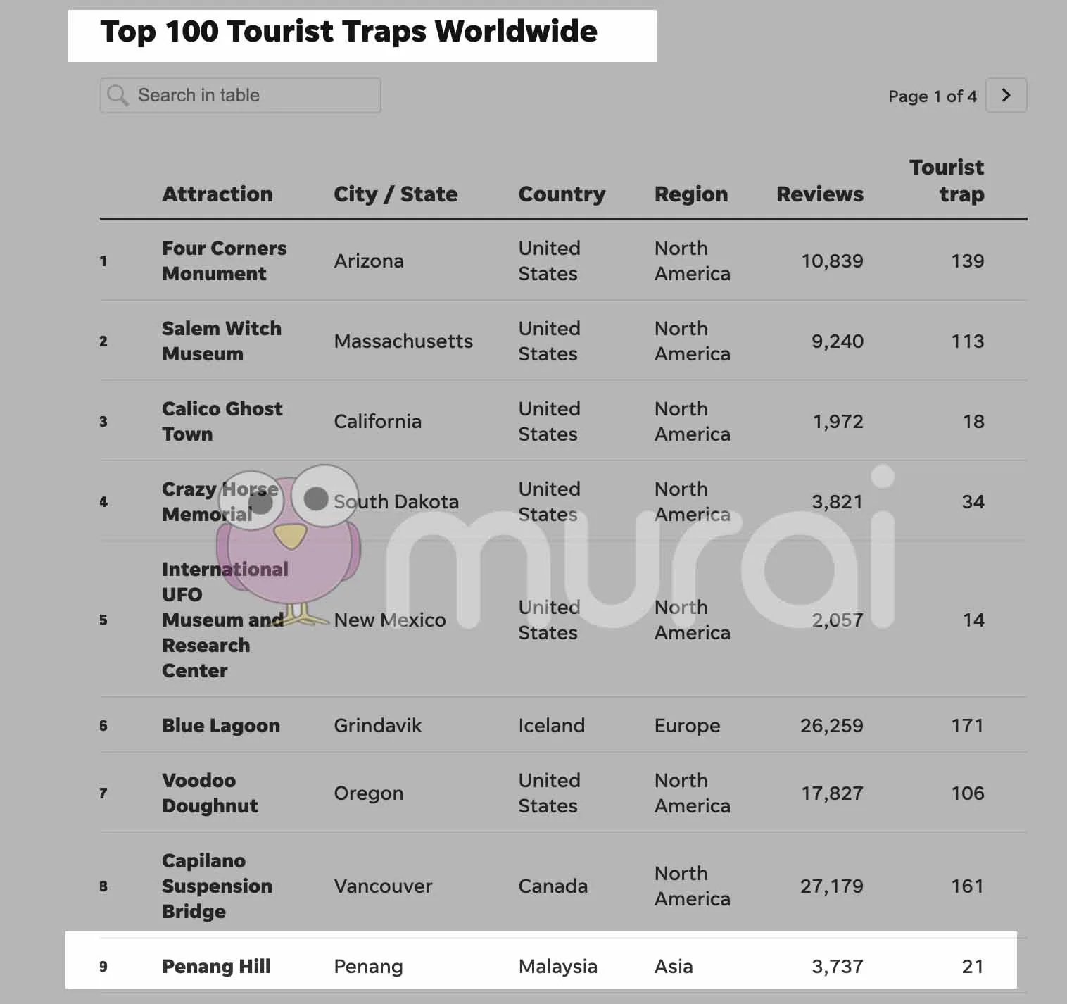 Akhbar harian Amerika, USA Today baru-baru ini mengeluarkan artikel yang menyenaraikan 100 ‘perangkap pelancong’ terbesar di seluruh dunia.