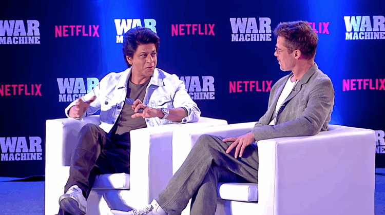 Baru-baru ini Brad Pitt telah berkunjung ke Mumbai bagi mempromosikan filem terbarunya, War Machine. Dalam sidang media filem itu, Superstar Bollywood, Shah Rukh Khan (SRK) turut hadir sebagai jemputan khas. Apabila dua bintang ini bertemu, maka Brad Pitt mengambil kesempatan bertanya mengenai dunia perfileman di India.