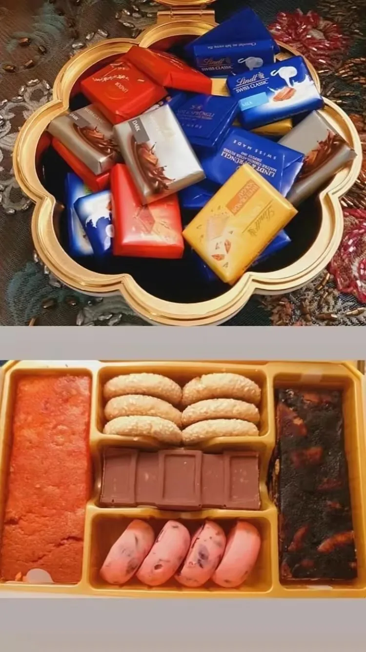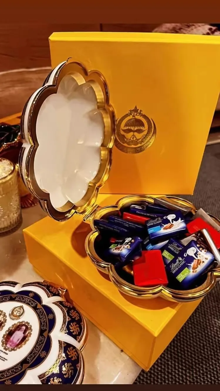 Buah tangan tersebut berupa beberapa manisan coklat dan biskut yang diletakkan di dalam bekas yang mempunyai gambar pengantin diraja itu.