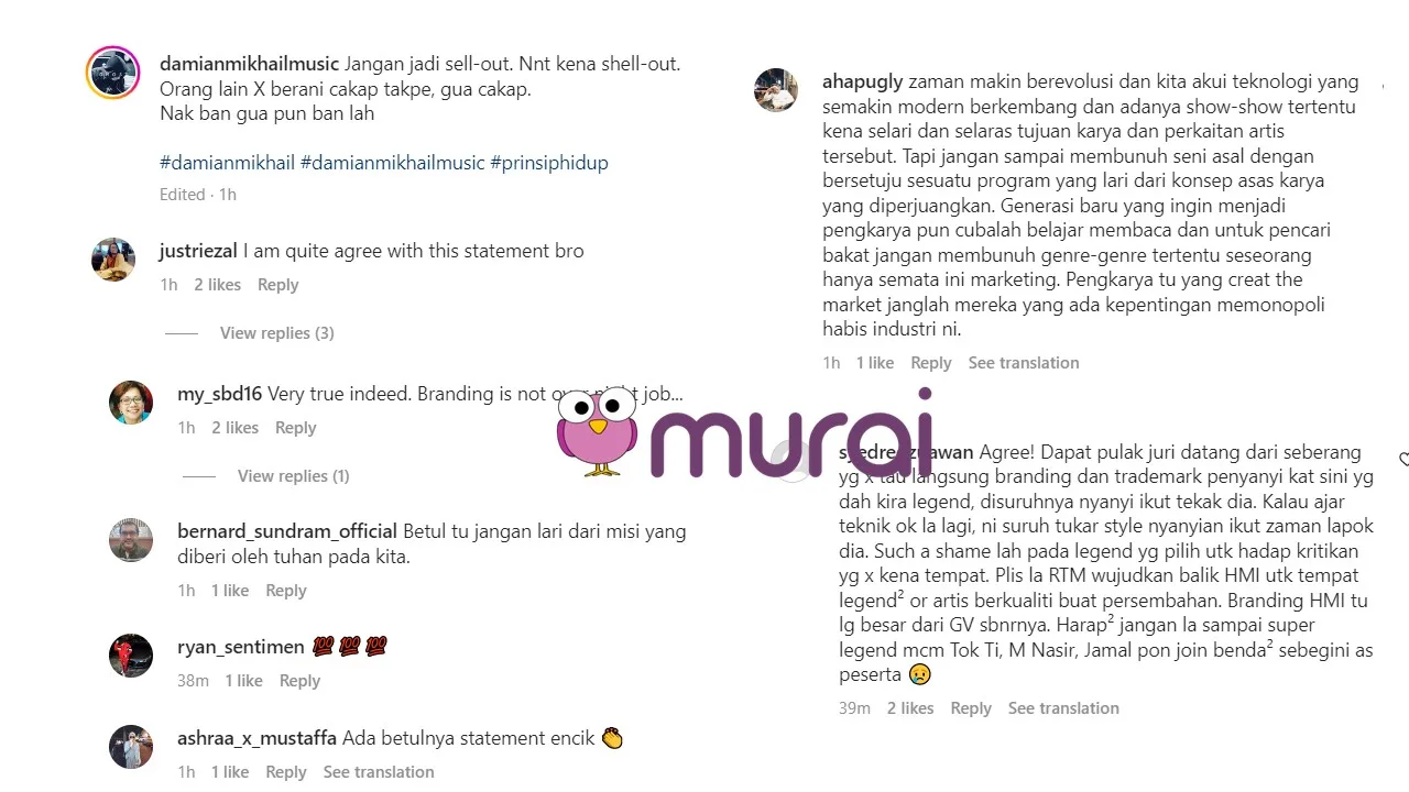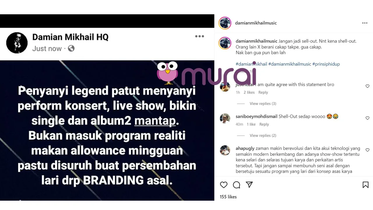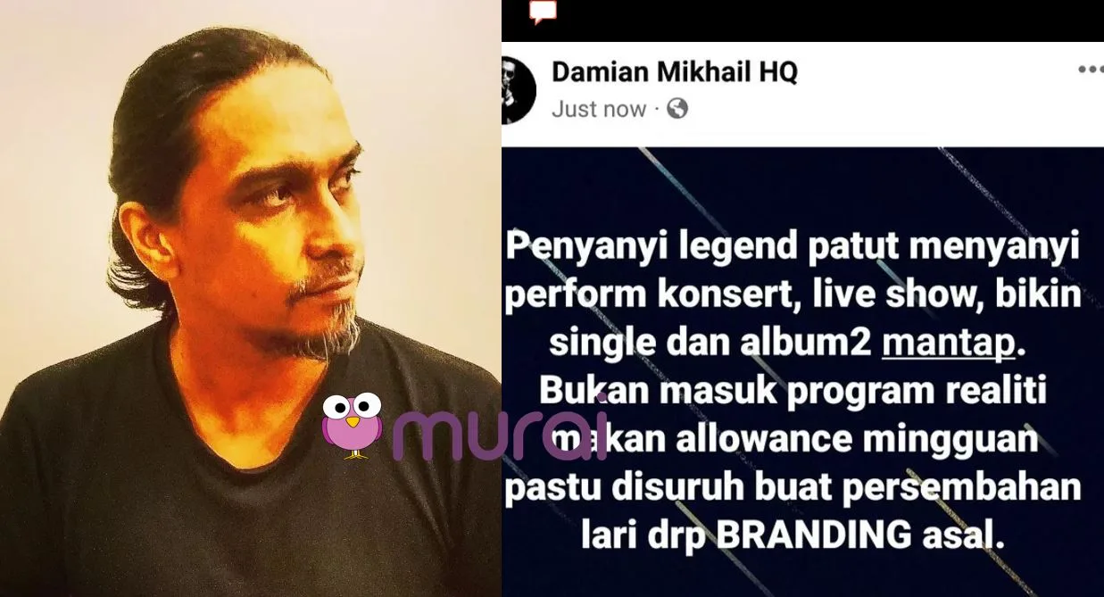 Satu status yang dimuat naik oleh Damian Mikhail di Instagram mengenai para penyanyi legenda yang terlibat dalam program realiti menjadi perhatian netizen.